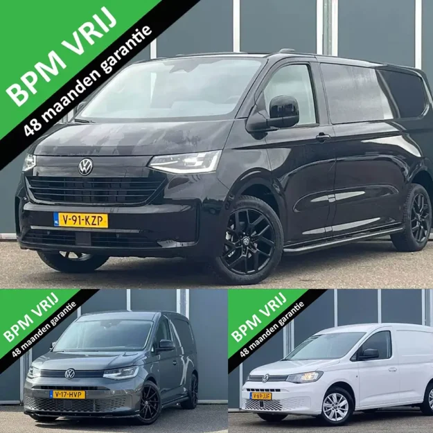 Bedrijfswagens nog steeds zonder BPM? Jazeker! Wij hebben nog 10x Volkswagen Caddy op voorraad en 1x Transporter (5 persoons uitvoering) op voorraad en allemaal zonder BPM! Op al deze VW Bedrijfswagens zit nog fabrieksgarantie t/m 12-2028 of 100.000km.   Prijzen VW Caddy Full operationele Lease vanaf € 595,- per maand (60 maanden rijplezier) Shortlease vanaf…